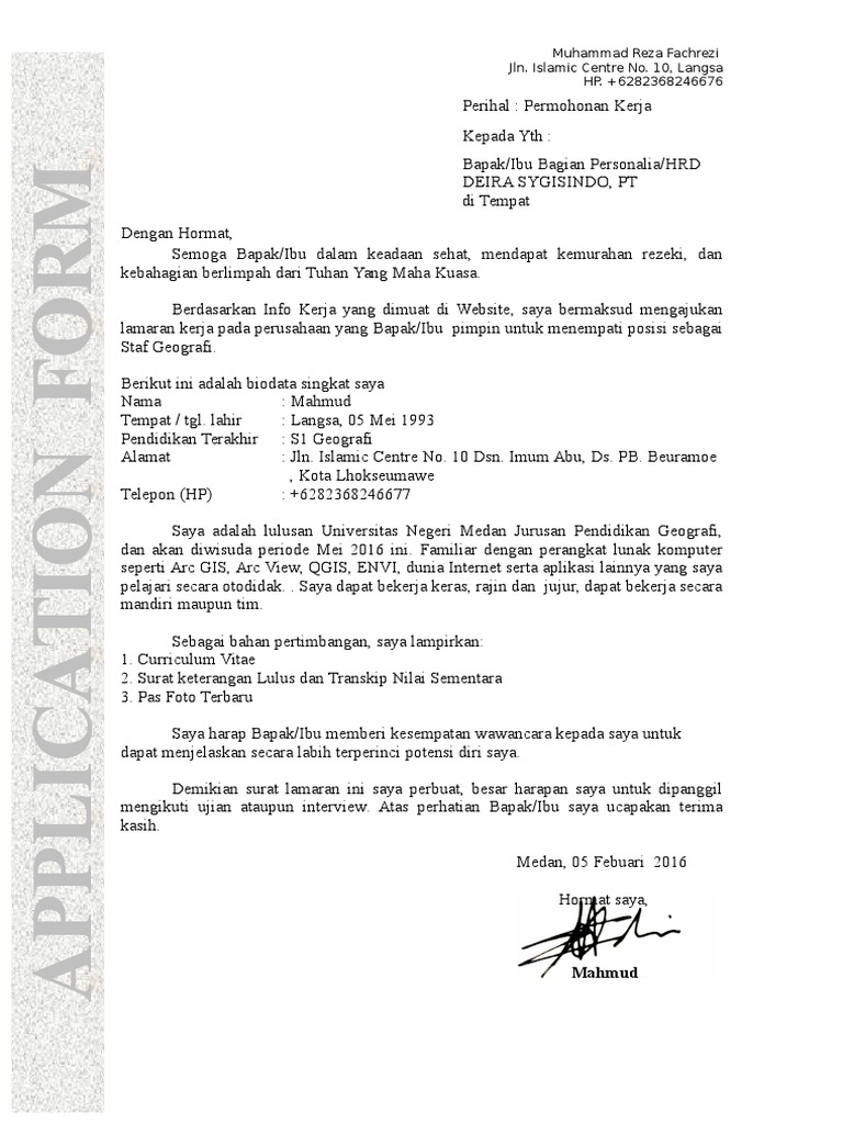Contoh Surat Lamaran Kerja Yang Baik Riwayat Hidup Kerja Surat
